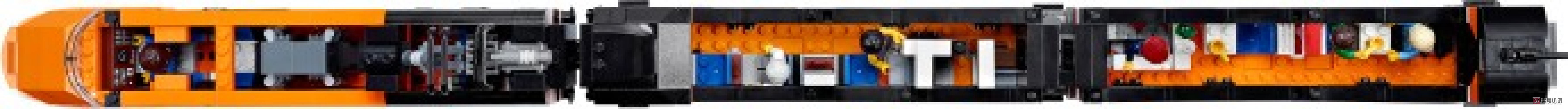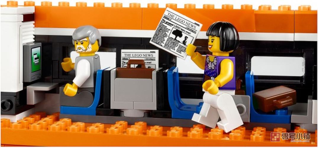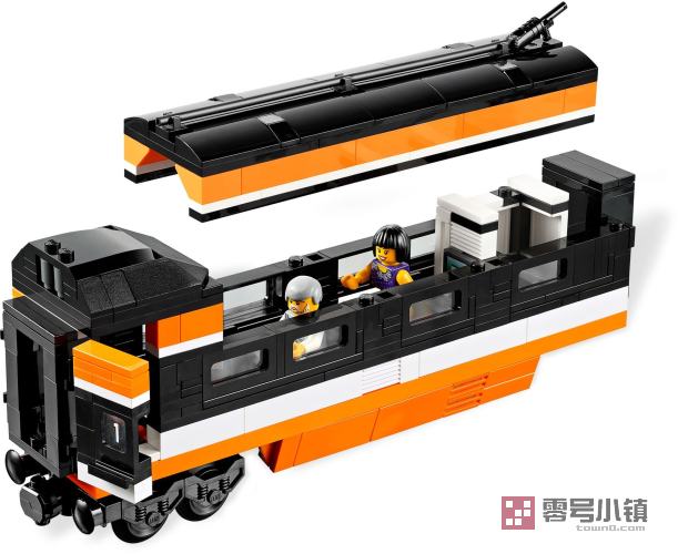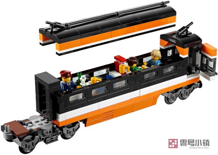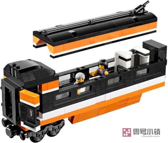 乘坐天际快车飞速前进!作为对现代化高速电动客车的完美阐释,快来收藏这款高度细节化的乐高玩具吧!细节精致的车身上有黑色的车窗,积木拼砌的V型标志,可伸展缩放仪、印制的挡风玻璃和积木拼砌的门。移开车顶可以看到2列客车车厢细节化的内部结构!使用控制面板和积木拼砌的配电箱可以使前面的发动机车厢转向!尽情享受豪华列车服务吧!这里有一等座位、逼真的行李箱、报纸、电脑屏幕,甚至还有带滑动门的浴室。后车厢配备有酒吧间,带铰链的柜台、供乘客使用的桌椅、咖啡机、杯子和瓶子。如需获得终极高速体验,请再添加一套时空快线模型,或者使用乐高动力配件使其实现完全机动化。套装含有的稀有组件包括橘黄色乐高积木(包括6x28的底盘板)和带有印制图案的瓷砖。套装包括6个乐高迷你人偶:列车司机、列车乘务员和4名乘客。