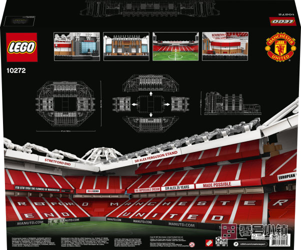 曼联球迷可以在家中或办公室里展示这款老特拉福德球场的复刻版模型。这款乐高®创意百变专家系列体育套装于 2020 年 2 月推出,恰逢这座体育场 110 周年庆。这款成人拼搭组合包含多个令人回味的细节,如球员通道和曼联三圣的雕像。