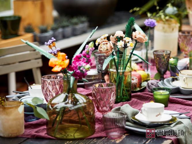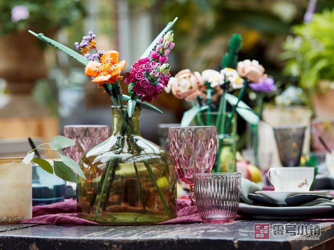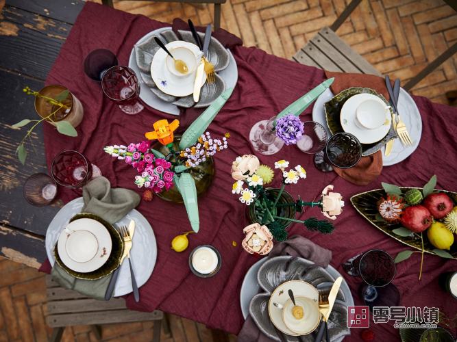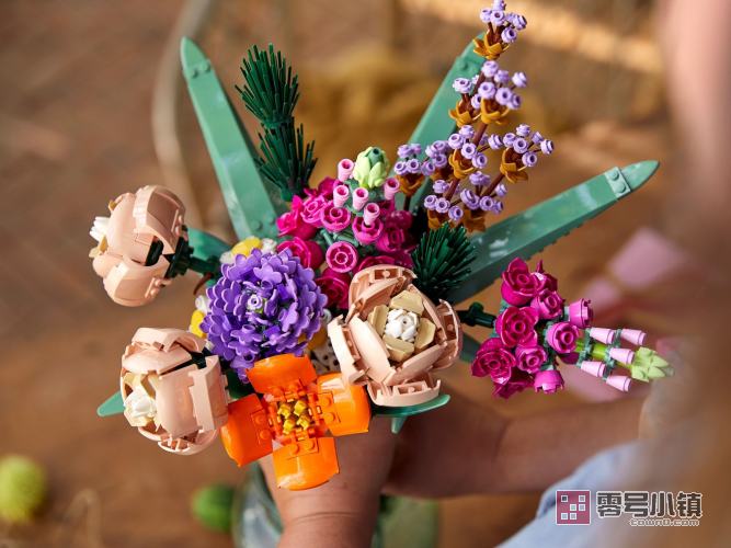 花束的每个细节都由乐高组件展现——均可供定制,可以创建独特的展示品。大部分花朵的花瓣可以重新布置,所以你可以体验设计不同花束布置的乐趣。拆下花茎并重新进行组合,以调整花朵的高度和形状。这款套装属于适于成人的乐高花植系列,包含一些可持续的塑料元件,其原材料来自甘蔗。