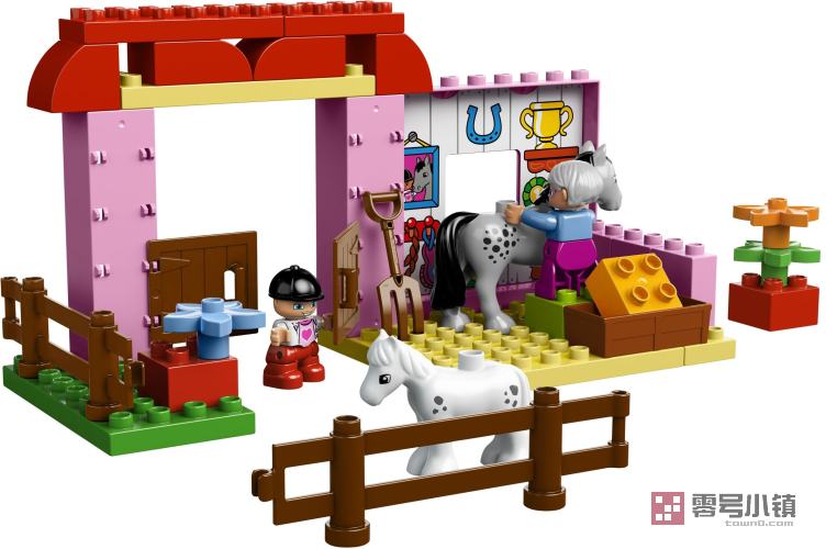 打开彩色养马房门,帮助马儿做好竞赛准备!祖母正在用乐高®得宝®干草包积木喂马,而小女孩正充满爱心地照顾小马驹。快使用干草叉、和可铺设壁纸开始一天的工作吧,亦或是搭建篱笆以保证动物的安全。得宝农场美好的一天即将来临。。
