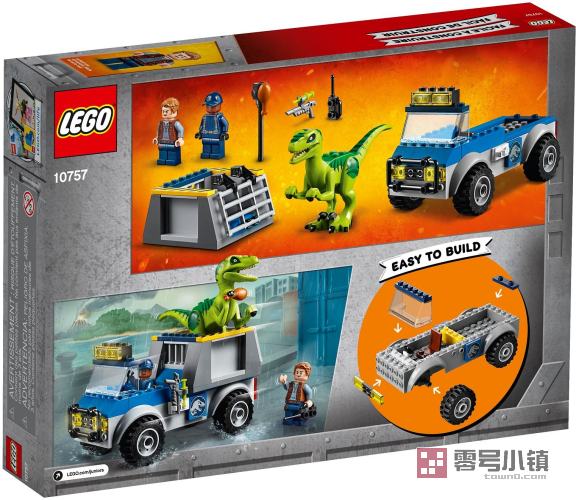 玩乐这款激动人心的乐高®小拼砌师系列迅猛龙的救援卡车套装,让您的孩子进入乐高®小拼砌师侏罗纪世界,进行惊心动魄的探索和历险,该套装拥有一个便于快速入门的底架,一个可打开笼门的笼子,以及一只肢体可活动的可拼搭迅猛龙,它的嘴还可以张开。这款有趣的玩具还附有一本简易的拼搭和玩乐指南,可帮助4至5岁的孩子树立强大的自信心。包括欧文和追踪者小人仔,以及一只迅猛龙。