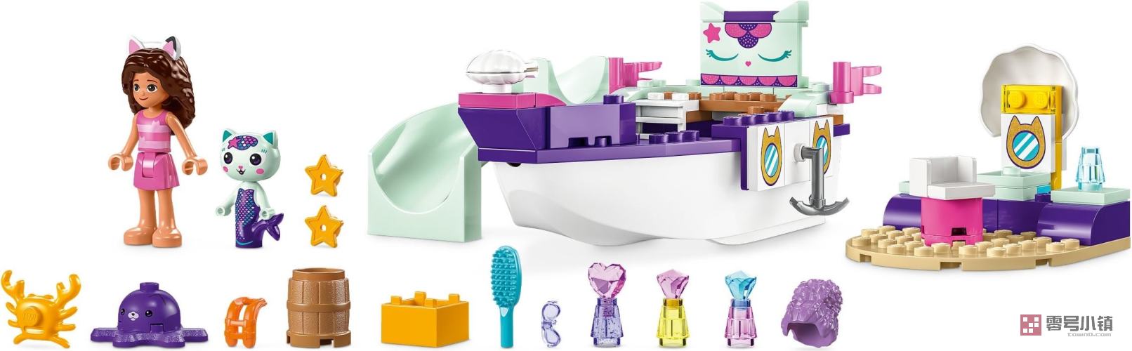 玩乐这款内容丰富的玩具套装,喜爱玩具船、美容化妆和创意玩乐的孩子会激动不已地探索富有创意的猫咪大冒险。此套装包含盖比迷你玩偶、人鱼猫玩偶、可以拼搭的船只和水疗沙龙,以及系列配件,如太阳镜、救生衣、镜子、刷子、美发产品、一顶额外的假发(专为盖比准备)。本套装提供精美的图画故事拼搭指南,数字化 LEGO Builder 应用程序也拥有直观的缩放和旋转工具。此外,借助船只入门积木,可以立即体验拼搭的乐趣。
