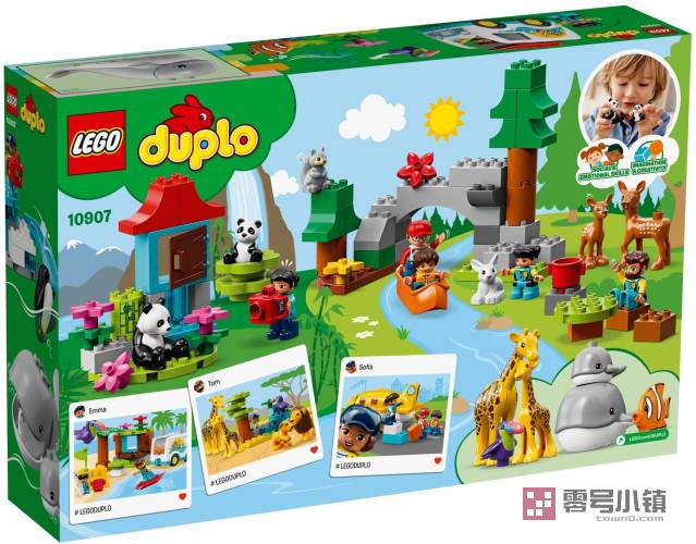 玩乐这款乐高®得宝® 10907 动物世界游戏套装,向将您的宝宝介绍丰富多彩的动物世界!可以在广袤的非洲大草原上狩猎,为狮子和长颈鹿拍照;当你划着独木舟沿森林中的河流行进时,可以发现一些可爱的森林生物;可以在热带海滩上堆建一座沙堡,还可以在南极观赏鲸鱼......这款跨越全球的儿童教育玩具包含一系列激动人心的动物、建筑、车辆、角色和配件,学龄前小朋友们可以尽情地进行玩乐和创造。