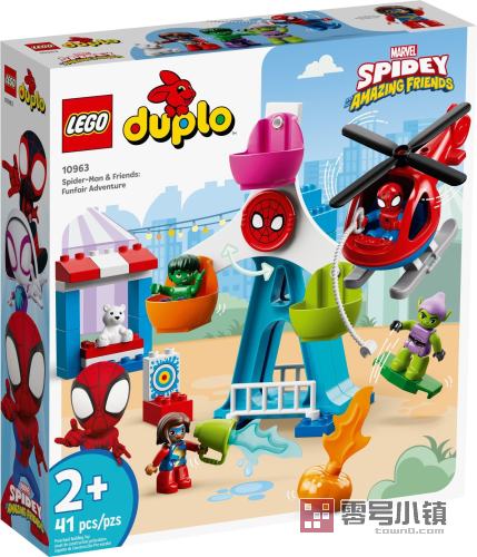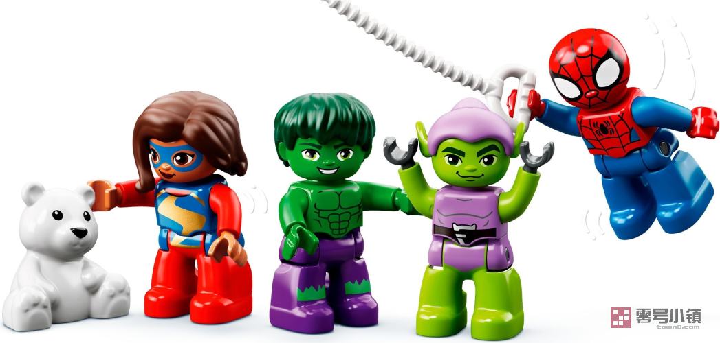 这款拼搭和玩乐一体式套装适合作为漫威超级英雄世界的很好介绍。在迪士尼 + 频道上热映的漫威电视剧《蜘蛛侠和他的神奇朋友们》的年轻爱好者们一定会认出这款玩具套装内含的 4 个得宝人偶:蜘蛛侠、绿巨人、惊奇女士和绿恶魔。孩子们可以让人偶们乘坐可以转动的摩天轮,发射燃烧着的南瓜炸弹,玩水枪,驾驶带可以旋转的旋翼的直升机,以及进行富有想象力的超级英雄大冒险。在玩乐同时,他们还可以培养自己的关键技能。