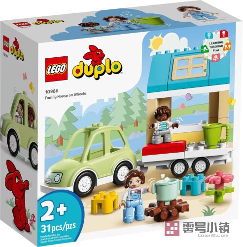 玩乐这款乐高®得宝®小镇移动式家庭住宅 (10986),与具有冒险精神的宝宝进行大冒险。帮助小拼搭师拼搭一座移动式房屋,其可以拼挂在汽车上。2 岁及以上的学龄前儿童可以将房屋挂在汽车上,前往任何他们选择的新地点。谁知道他们会遇到什么有趣的人!