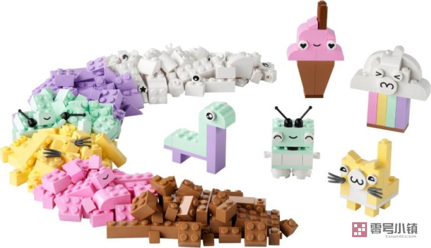 体验淡雅色调的创意玩乐这款创意拼搭套装包含 333 块不同形状和尺寸的淡色积木,其中 18 块积木带有富有感情色彩的眼睛,孩子们可以利用它们将自己的作品生动重现。本套装为 5 个易于拼搭的模型(白云、冰淇淋、恐龙、猫咪和机器人)提供了明晰的纸质版说明。随着创造力自信心的增强,孩子们可以探索自由拼搭的无尽乐趣。还可以从 LEGO Builder 应用程序中找到本套装拼搭说明的数字版。