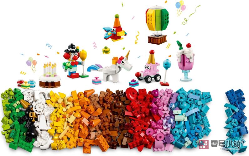 借助内装 900 块组件的积木盒一起体验拼搭的乐趣利用这些色彩多样的拼搭积木分享创意乐趣。套装内含的组件被分装在 6 个积木袋中,每个袋子都包含积木和明晰拼搭说明,可供拼搭 2 个简易模型。这些模型包括泰迪熊、小丑、独角兽、皮纳塔、彩虹、蛋糕、爆米花、气球和小礼物。本套装非常适合作为任何庆祝活动的一个团队项目,当活动结束后,创意拼搭还可以继续!还可以从 LEGO Builder 应用程序中找到本套装随附的拼搭说明的数字版。