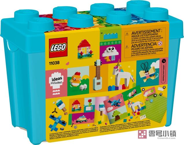 乐高®经典缤纷创意积木盒 (11038) 包含一系列激动人心的乐高积木和组件,可为 4 岁及以上的男孩和女孩带来无尽的创意和灵感。喜欢创意拼搭的孩子一定会喜欢上积木盒中令人眼花缭乱的彩色积木和拼搭玩具。 为了让孩子们上手,这里有 10 件很酷的玩具供他们拼搭:马儿、胡萝卜车、樱桃、手提式录音机、可以转动的风车、滑板、云朵、蝴蝶、鸡和吉他。然后,借助套装内含的模型创意,他们可将这些玩具重新拼搭为飞机、独角兽、房屋、鲜花、冰淇淋、汽车、树和另一种滑板。接着,他们可将积木再次混合在一起,变换颜色、形状和尺寸,交换门、窗户、轮子、植物、眼睛和透明薄件,创造属于他们自己的独特模型。 乐高经典系列玩具能够带来许多创意和灵感,允许父母与他们的孩子分享拼搭的乐趣和成长历程。