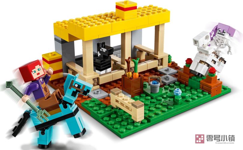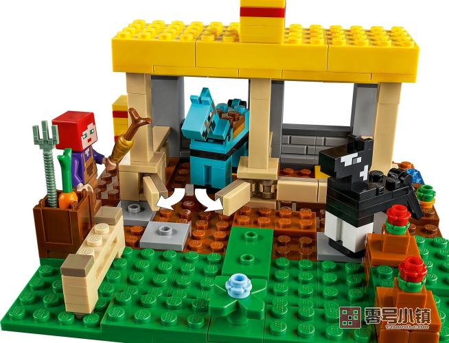 乐高®我的世界马厩 (21171) 将热门在线游戏的乐趣和冒险与乐高积木无穷的创造力和照顾马儿的喜悦组合在一起。