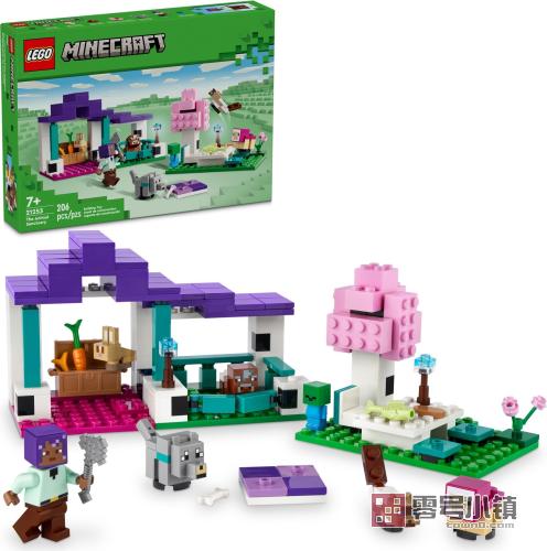 这款乐高®我的世界动物庇护所 (21253) 拼搭套装内容丰富,可作为游戏玩家和孩子的礼物。此玩具包含 6 个《我的世界》动物,可供 7 岁及以上的男孩和女孩去照料,还有首次出现的乐高我的世界角色埃菲 (efe),可供进行游戏情节角色扮演。 这款平原生物群系套装包含 3 个区域:带围栏的玩乐空间,设有大门和一个房间,其中房间内放着一口箱子,里面装满了动物食物,像骨头、胡萝卜和小麦;户外野餐区,带有树下的桌子;以及一张地毯,可供疲劳的动物们休息。本套装包含动物照料者埃菲,以及许多小生物,如《我的世界》猫、红羊、狼、兔子......,甚至还有幼年僵尸。这款乐高我的世界儿童拼搭套装可作为孩子和动物爱好者的电子游戏玩具礼物。它可以促进独立式角色扮演,还可与其它乐高我的世界玩具(单独出售)轻松组合。如想体验额外的数字乐趣,LEGO Builder 应用程序允许拼搭师们缩放和旋转三维模型,以及跟踪进度。
