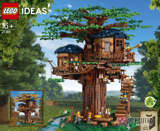 拼搭、展示和玩乐这款极为精致的乐高®创意 LEGO® Ideas 21318 树屋游戏套装,其包含 3036 块积木颗粒。即使对于经验丰富的乐高拼搭者,这个复杂的模型也具有很大的挑战性,所有家庭都会喜欢拼搭它,其包含一款风景秀丽的底板和 3 座乐高小屋——主卧室、浴室和儿童房。这棵树拥有可互换的绿色夏季树叶和黄色与棕色的秋季树叶——这些树叶和基板上的各种植物元件均采用聚乙烯塑料制成,这种塑料源自可持续的植物——树顶和小屋屋顶可以拆卸,以便于进入。这款模型充满了激发游戏兴趣的功能,其中包括可拼搭的野餐桌和座椅、秋千、篝火、藏宝地图和隐藏的宝石,可以进行一次好玩的寻宝之旅,还包括一台发条式起重机,位于卧室小屋的阳台上。这款独特的创意玩具可作为一件很棒的生日礼物,其包含妈妈、爸爸和孩子小人仔,以及一只小鸟,可对有趣的家庭情景进行角色扮演。这款玩具还包含一本手册,内容包含拼搭说明,以及与这款超棒乐高创意 LEGO Ideas 套装的粉丝创造者和乐高设计师相关的信息。