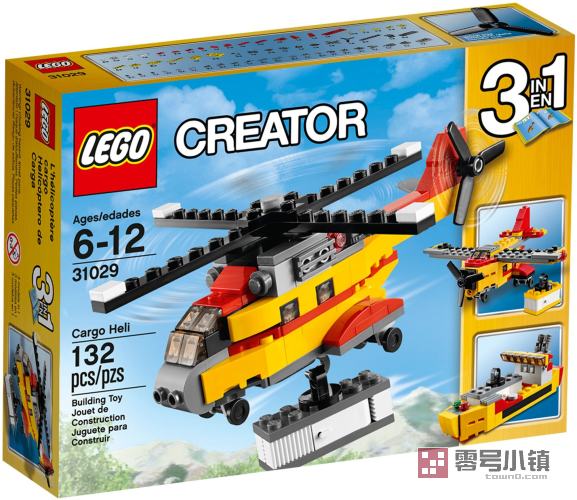 用三合一货运直升机轻松运送重型物品!滑行到直升机坪准备起飞。升空后调整姿势,降下带吊钩的绞绳,小心翼翼地提起货物集装箱。这款产品采用靓丽的红黄双色,另有可转动的主旋翼和尾旋翼、2个精致引擎、导航灯、带轮子的起落架、绞绳吊钩和一个门可开合的货物集装箱。现在开始送货吧!还可以拼成酷炫的货轮或是帅气的货运飞机。