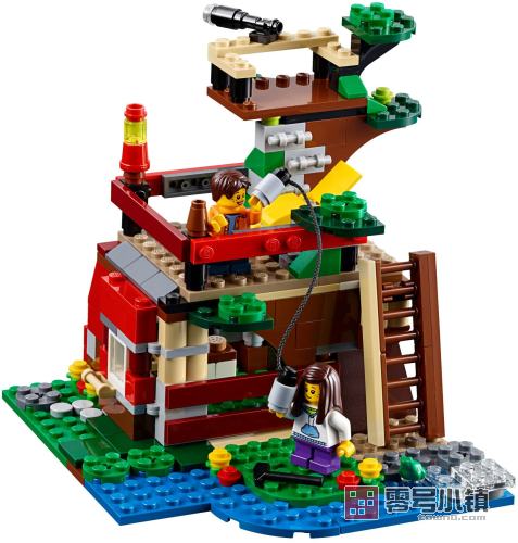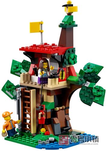 用色彩缤纷的三合一乐高®创意百变模型展开激情的探险之旅验。帮助孩子们拼砌 树屋。降下滑轮提起板条,把木头钉在一起,再刷上亮丽的油漆。建好屋子之后, 把你的工具放到隐蔽的储物间,再升起自己的树屋旗帜!用水枪击退入侵者,和树 林里的蓝色小松鸡还有小青蛙愉快玩耍。可以改装成前卫的俱乐部会所或是坚固的 丛林要塞。
