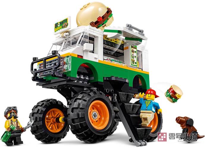 谁想吃汉堡?攀登可折叠式楼梯进入巨轮汉堡车,为乐高®公民提供他们最喜爱的食物!控制大型车轮和可工作的悬挂驶过路边,在海滩上找个合适的地点。摆放好桌椅,然后登上卡车,开始做饭。接着,将它重新拼搭为强劲的越野车、能够牵引车辆的强大牵引车,或者拼搭任何你喜爱的事物!