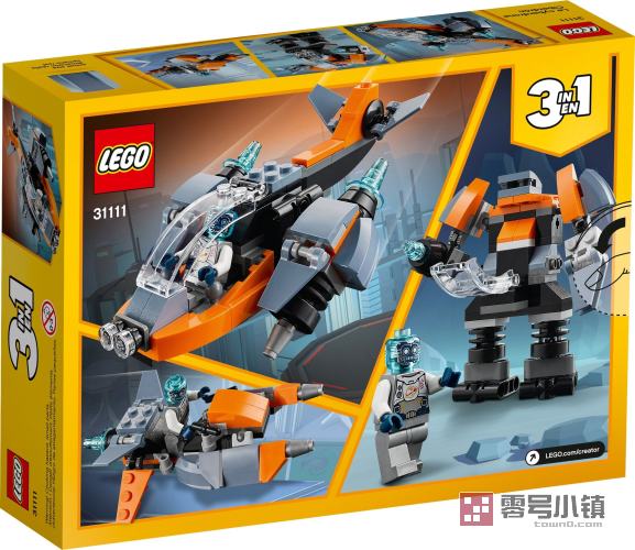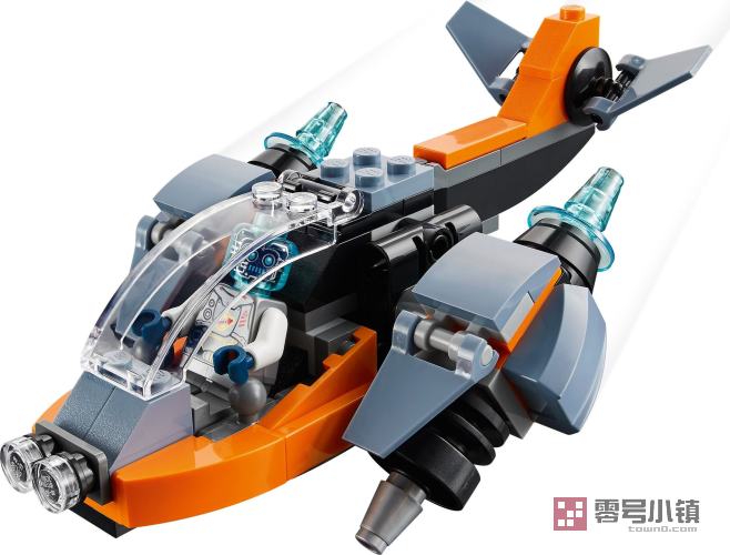 玩乐这款乐高创意百变 3 合 1 玩具套装,小太空探险家们可以获得 3 种不同的拼搭和玩乐体验。他们可以拼搭这款二次元无人机,然后将其重新拼搭为二次元机甲或二次元摩托车。这款玩具套装包含一个蓝色透明脑袋的机器人小人仔,它于 2021 年 1 月新推出,可以驾驶这 3 种模型。