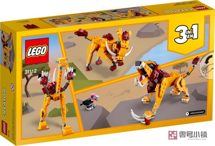 玩乐这款超棒的乐高®创意百变 3 合 1 野狮 (31112) 玩具套装,孩子们会喜欢上进入沙漠,进行有趣的野生动物大冒险。这款套装包含一个积木拼搭的狮子模型,其拥有灵活的头、下颚、腿和尾巴,以及秃鹫和动物骨架,能够启发许多有趣的故事。