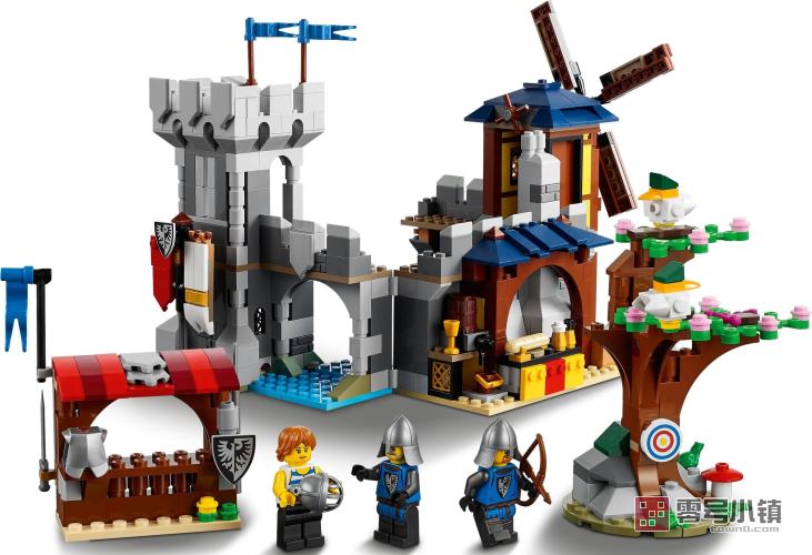 这款乐高®创意百变 3 合 1 套装允许孩子们拼搭 3 种不同的模型。他们可以从中世纪城堡开始,然后将其重新拼搭为带投石机的城堡塔楼或热闹的集市(设有水磨、塔楼和监狱)。