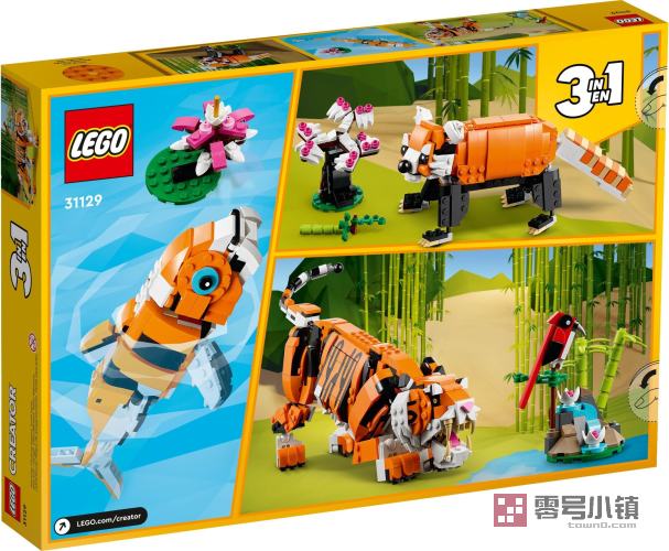 能够启发创意游戏的乐高玩具玩乐这款 3 合 1 玩具套装,孩子们至少可以获得 3 种不同的拼搭和玩乐体验。他们可以拼搭一头配有红色小鸟的灵活老虎,然后将其重新拼搭为配有竹子和盆景的灵活熊猫,还可以将其转变为配有睡莲的锦鲤,锦鲤拥有可以活动的尾巴和鳍,再或者发挥自己的想象力,创造另一种动物。