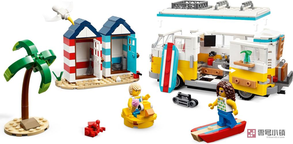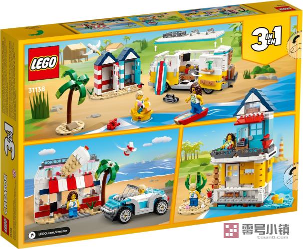 玩乐这款乐高 3 合 1 套装,乐高粉丝们可以从 3 种可以拼搭的海滩场景中进行选择。他们可以拼搭一辆细节丰富的海滩野营车及 2 座海滩小屋和一棵棕榈树,然后将其重新拼搭为一座 2 层的水边避暑别墅和沙滩场景,或者拼搭为带有服务窗口的冰淇淋店、配有桌子的 2 层露台和一辆超酷的沙滩越野车
