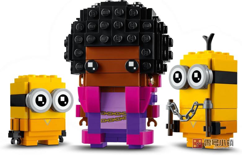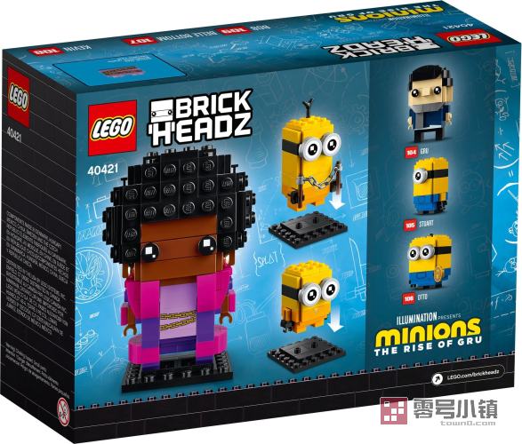 乐高®方头仔 爆炸头天后、凯文和鲍勃 (40421),包含 3 个《小黄人大眼萌:神偷奶爸前传》电影角色:爆炸头天后、小黄人 凯文 和带有武器的小黄人 鲍勃。与其它乐高方头仔系列模型一样,这 3 个模型均配有各自的角色 ID 和坚固的底板,既可以单独展示,也可以与其它方头仔模型一起展示。