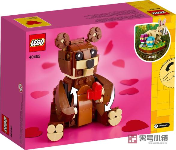 使用这款可爱的乐高®情人节爱心棕熊 (40462) 为的情人节带来快乐。棕熊手捧红心,带有灵活的手臂和耳朵,可用来创造不同的表情。野餐毯子装饰有可拼搭的红色心形气球和五颜六色的鲜花,为这个可爱的角色烘托出了浓浓的情人节气氛。为乐高粉丝们带来浪漫的情人节惊喜!