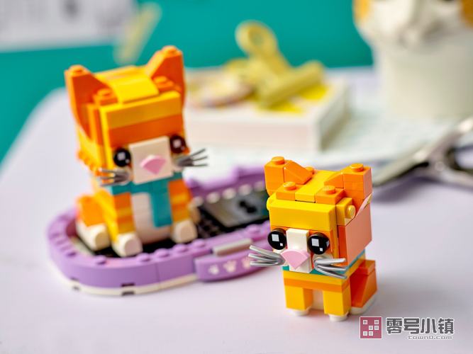 喜爱宠物的孩子一定会喜欢上这款拼搭和展示一体式方头仔猫咪和小猫套装。在装饰精美的紫色猫篮里,黄虎斑猫围着青色围巾,显得非常可爱,旁边还坐着一只更可爱的小猫。这款宠物拼搭套装可作为孩子、方头仔爱好者和猫咪爱好者的很棒礼物。