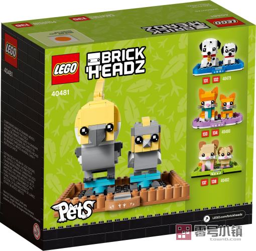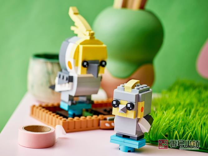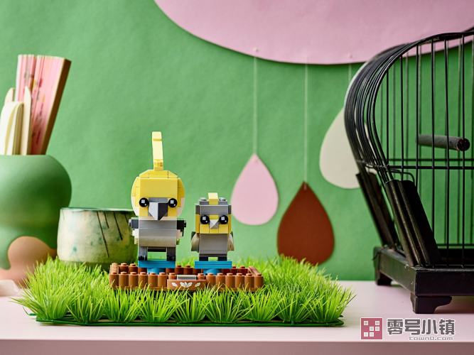 爱鸟的孩子可以拼搭和展示属于自己的鸡尾鹦鹉和小鹦鹉方头仔模型。两只色彩艳丽的鸟儿栖息在坚固棕色底板的支架上。这款宠物拼搭套装可作为孩子、方头仔爱好者和鸟儿爱好者的很棒礼物。