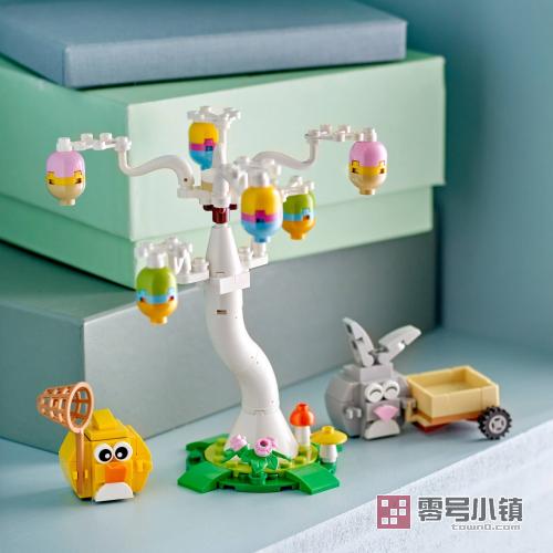 这款拼搭套装既可作为成人、孩子和动物爱好者的有趣复活节礼物,也是亲朋好友一起拼搭的理想套装。可以拼搭树木、手推车及乐高鸟儿和兔子,然后拼搭色彩鲜艳的蛋并将其拼接在树枝上,供动物们寻找。帮助小鸟和复活节兔子用网收集彩蛋,并将其存放在手推车中。