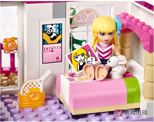在乐高®好朋友斯蒂芬妮的家里探索、玩耍——这里有带弧形落地窗的厨房、可打开的冰箱和烤箱、带电视的起居室、通向带弧形阳台的卧室的螺旋楼梯、淋浴房以及工作室。在门廊的秋千椅上共度美好友谊的时光,记得照顾好笼子里的兔宝宝。包括三个迷你玩偶人物以及一个兔宝宝角色。