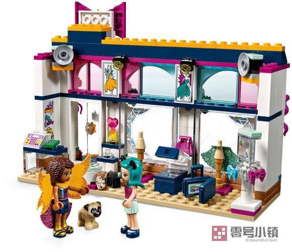 在乐高®好朋友41344安德里亚的饰品店中浏览所有展示的饰品,包括一套假发、织物裙子手提包、蝴蝶结和香水。可旋转这间配有镜子的试衣间,将安德里亚的新造型展示给她的朋友们。这款好玩的时装店套装还包括一台缝纫机、收银机、扬声器、小狗德克斯特的支座,以及一辆超酷的小型摩托车,安德里亚可以骑它游逛心湖城。包括两个小人偶及一只小狗。