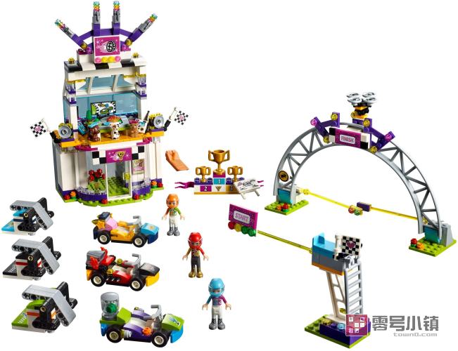 这款乐高®好朋友41352盛大比赛日套装为心湖城的好朋友们展开激动人心的跑跑卡丁车比赛提供了完美场地!在主赛车建筑内,楼下设有带储物柜的更衣室和休息室,而楼上设有颁奖台和贵宾区,可供心湖城的所有宠物们观看比赛。该套装设有一个起跑线和一个单独的终点线,终点线处还配有指示灯和扬声器组件。这款乐高好朋友套装还包括3个小人偶和3只动物,并且每个小人偶拥有自己的跑跑卡丁车和发射器。
