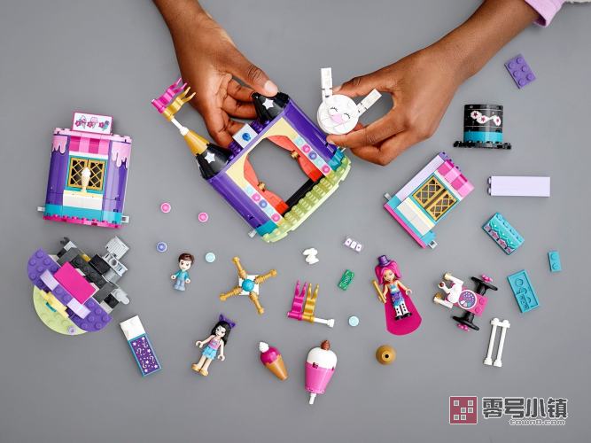 充满有趣的功能这款套装包含一个微型玩偶和 2 个迷你玩偶——1 个带有面部彩绘,1 个穿着魔术师披风。孩子们可以扮演游客、游乐场员工,甚至为孩子表演魔术的魔术师——他们可以通过扭转旋钮让艾玛“悬浮”起来,调皮的孩子会喜欢上为他们的家人表演这个魔术。他们还可以把此模型带到玩伴聚会上,用神奇的力量令孩子们赞叹不已!作为一个额外的惊喜,本套装还包含可以在黑暗中发光的元件,当灯光熄灭时,它们可以亮起!把孩子们带入激动人心的心湖城世界,他们可以在神奇的乐高好朋友女孩们的陪伴下体验无尽的乐趣。
