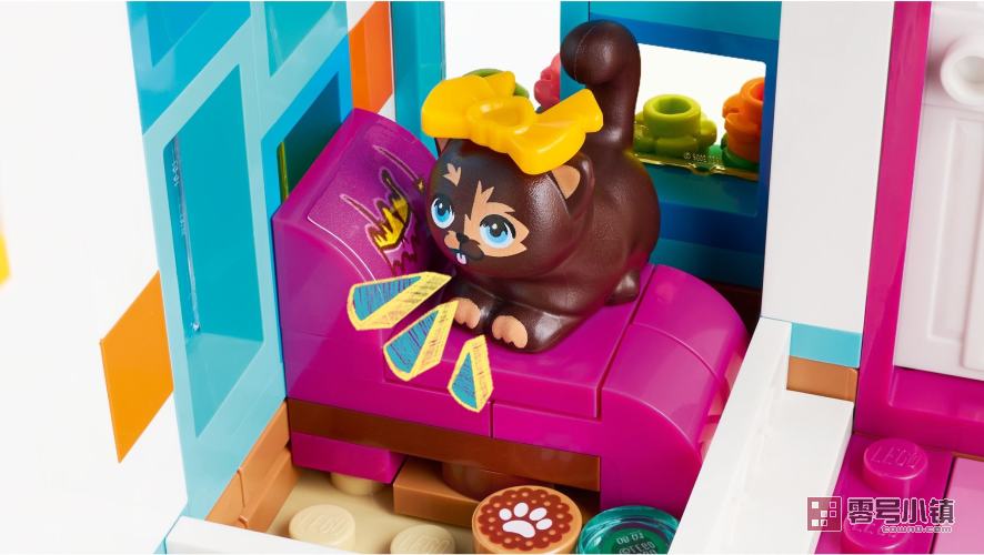 喜爱猫咪的孩子一定会喜欢上探索这款猫咪酒店 (41742) 拼搭玩具。本套装专为 6 岁及以上的孩子设计,包含 2 个迷你玩偶和 3 个猫咪角色,可以带来许多讲故事机会。孩子可以帮助奥利把他的猫咪安顿在酒店,酒店内设 3 个房间、沙发和猫树。奥利甚至还可以为猫咪制作蝴蝶结和王冠。户外也一样好玩,为猫咪准备了猫咪主题的标志、可供攀爬的树、供人出入的门和供猫咪使用的小门。本套装还包含许多其它配件,如小箱子、猫粮、玩具等,以便孩子表演猫咪护理。