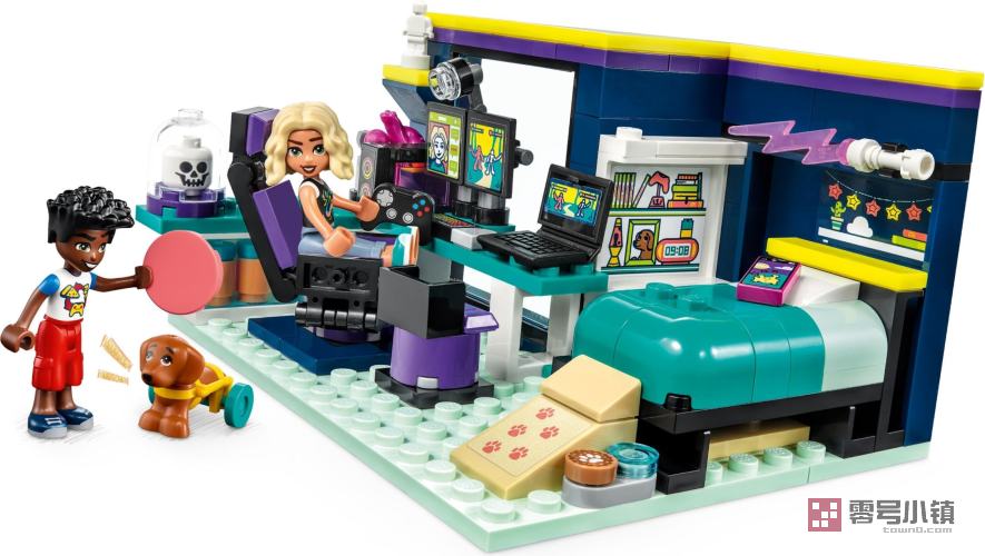 玩乐这款乐高®好朋友诺娃的房间 (41755) 可拼搭玩具套装,丰富的内容等着 6 岁及以上的孩子们去探索。扎克认为自己与诺娃没有多少共同爱好,直到他发现她喜欢玩游戏——就跟他一样!现在他们可以一起玩乐,建立深厚的友谊。孩子们会喜欢上探索卧室中的细节,其中有带键盘的游戏用计算机、霓虹灯风扇、游戏椅、麦克风等。孩子们可以帮助角色们照料搜救犬皮克尔。卧室中设有工作台,可供诺娃维修皮克尔的轮子,还设有坡道,以帮助皮克尔上床。孩子们会喜欢上探索其它细节(如隐藏的海报),其会透露诺娃的其他兴趣。