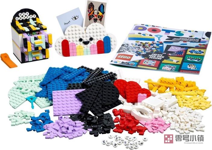 本套装包含一本手册,内含具有创意的设计灵感、系列说明(可在线访问:LEGO.com/buildinginstructions,了解如何制作不同的房间装饰品),以及 5 个可定制的 DOTS 物品(写字台收纳盒、2 层的立式抽屉、可悬挂的留言板、画框和小托盘)。借助补充装 – 系列 5(41932,单独出售)或丰富多彩的 DOTS (41935),孩子们可以使用色彩多样的光板和字母光板在模型组件上设计图案和信息,或者自由发挥创造力。