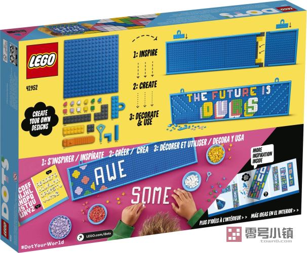 孩子及手工艺爱好者们一定都会喜欢上这款乐高® DOTS 大信息板 (41952) 组合!这款套装专为激发孩子的自我表达能力和创造力而设计,允许 8 岁及以上的孩子创造和展示可以定制的信息,以及对其进行调整和改变,以符合他们的心情、激情,或搭配室内装饰。