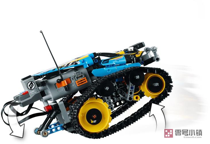 驾驶这款完全机动化的乐高®机械组 42095 遥控特技赛车,做出前轮离地、旋转和转向动作,并穿越复杂的地形。这款坚固的模型拥有宽幅的抓地式履带,其配有大型后部链轮,可获得最优的加速性能;还拥有现代设计风格,采用鲜艳的黄、蓝配色方案,并配有装饰性贴纸!可以向前、向后、向左或向右行驶,还可以进行 360° 转向。可将这辆 2 合 1 遥控式履带车辆重新拼搭为一辆遥控赛车,获取双重的拼搭和玩乐体验!