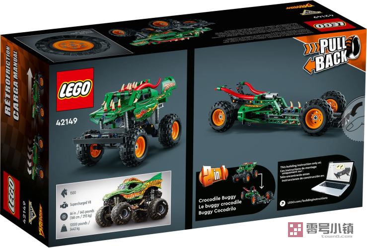 当孩子们准备好尝试新挑战时,他们可以将这款 2 合 1 Monster Jam 玩具卡车重新拼搭为一款鳄鱼越野车模型。回力功能允许孩子们驾驶他们的卡车进行竞赛,重现他们在真实 Monster Jam 竞技场上看到的花式技巧。