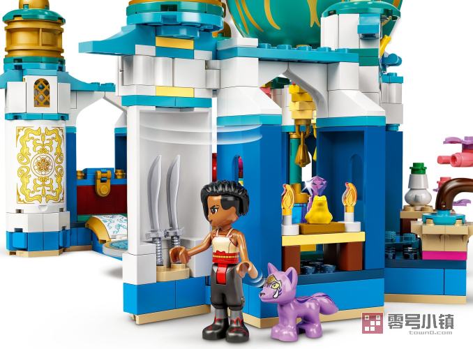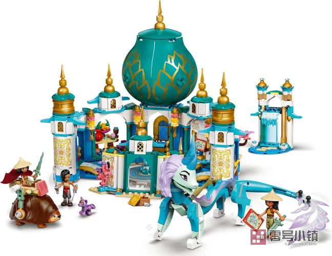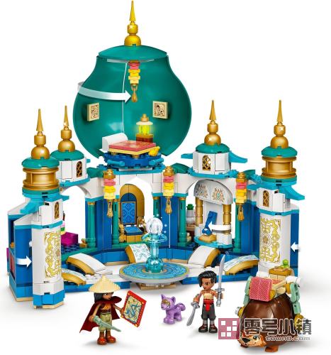 这座可拼搭的宫殿包含 6 个不同的房间,其中包括正殿、藏宝室及隐藏在旋转墙后面的房间。两侧塔楼可以打开,放置 Raya 和 Namaari 的武器。打开中间的塔楼,可以看到一间卧室,内有 Raya 朋友的肖像。