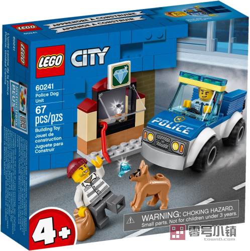 孩子们会喜欢上扮演日常英雄,而通过玩乐这款乐高®城市组警犬突击队 (60241) 套装,他们就可以做到这一点!包含一辆很酷的玩具警车,车内可容纳警官和他忠实的警犬,还有一家珠宝店,以及一个拿着撬棍的坏蛋。对于拥有丰富想象力的打击犯罪的小斗士来说,这个场景非常理想。 有趣的警察玩具套装,非常适于孩子 这款 4+ 玩具套装包含简易的印制版拼搭指南和特殊的入门积木颗粒,让孩子为成功拼搭乐高玩具而感到自豪。通过适用于智能手机和平板电脑的免费 LEGO® Life 乐高®生活应用程序,孩子可以获取 Instructions PLUS——交互式拼搭指南,带有缩放和旋转查看工具,能够帮助孩子充分体验乐高拼搭的乐趣。 乐高城市组——一系列适合儿童玩乐的炫酷玩具 玩乐乐高城市组警察套装,孩子们会沉浸于开放式冒险和反映真实生活的精彩动作场景。并且,看到各种功能丰富的建筑和车辆,孩子们会放飞自己的想象!