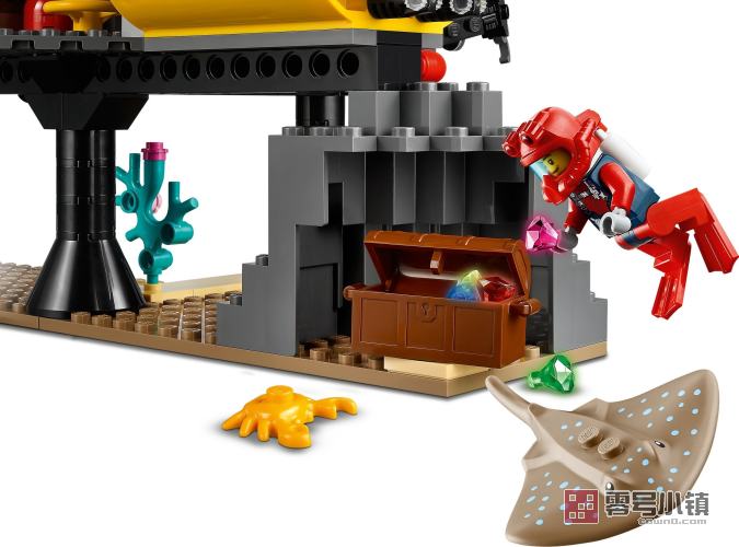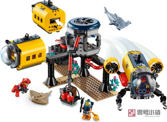 玩乐这款乐高®城市组海洋探险基地,加入探险队,观察鲨鱼和黄貂鱼。这款超棒的基地设有可互换式生活舱、睡眠舱和研究舱,还配有潜水艇,起重机和水下无人机,为你进行海底探险准备好了一切。这里甚至还有咖啡机!进入减压舱,登上潜艇。然后驶出基地,开始探索海洋的奥秘!