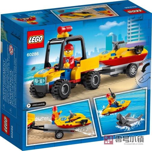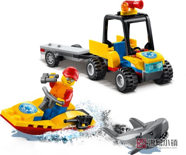 这款乐高®城市组全地形海滩救援车 (60286) 玩具套装包含一辆全地形车,其配有防滚架和可以运输本套装内含的水上摩托车的拖车,可以为你的日常英雄带来长时间的创意乐趣。还为孩子们准备了救生员小人仔和鲨鱼玩偶,可作为他们进行英勇的海滩冒险的很棒场景。
