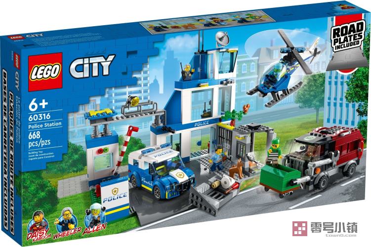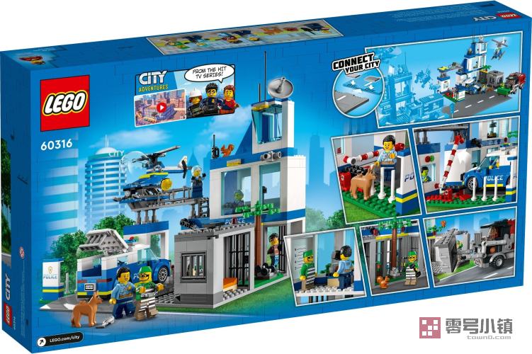 这款 3 层的乐高®城市组现代化警察局 (60316) 玩具充满具有启发性的细节,其中包括一座带有越狱功能的监狱、一个囚犯操场和一片警犬训练区。孩子们还可以获得警车、直升机、坏蛋定制的垃圾车,以及一块道路底板,可供与其它玩具套装进行拼接。只需添加上 5 个小人仔,其中包括 3 个《乐高®城市大冒险》电视剧角色,即可开始体验游戏的乐趣。