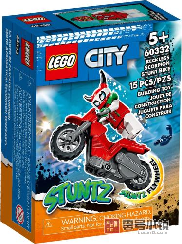 使用这款乐高®城市组狂野蝎子特技摩托 (60332) 玩具套装让孩子的游戏充满激情。本套装包含一辆很酷的飞轮驱动式特技摩托车,以及乐高城市组 Stuntz 角色天蝎露察德拉和她的宠物蝎子——一对完美的特技表演组合。