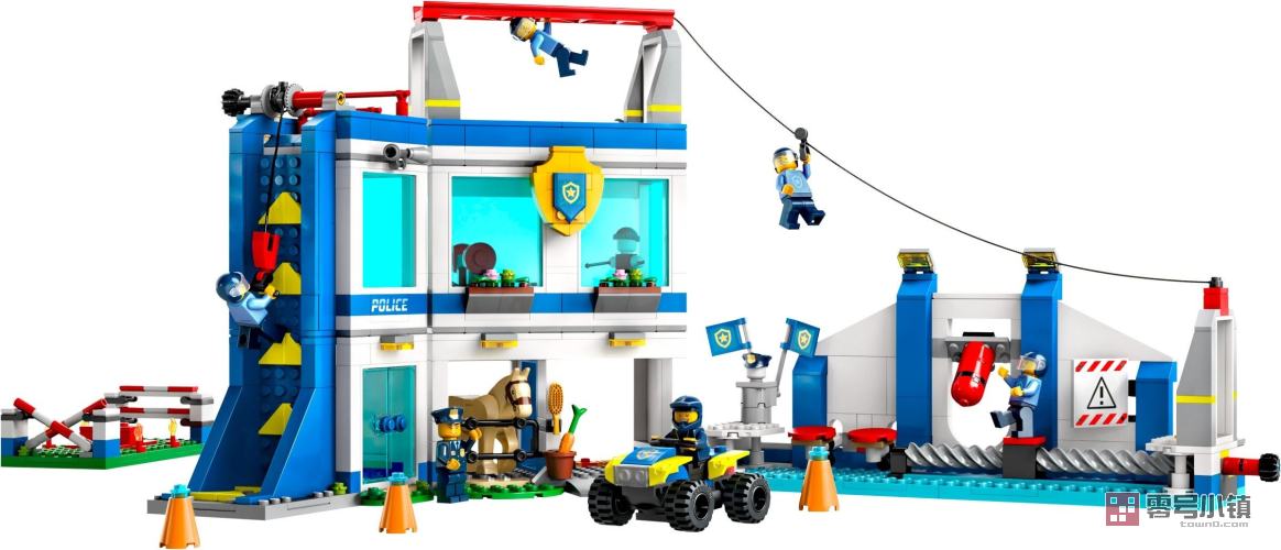 这款乐高®城市组警察训练学院 (60372) 套装包含一座模块化多房间警局,以及一个户外障碍训练场,设有许多有趣的设施,其中包括玩具攀岩墙、攀爬架、滑索。本套装还包含一辆可以驾驶的全地形车、6 个小人仔和一匹马儿。