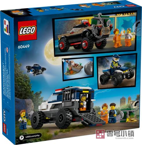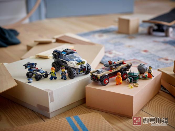 乐高®城市组越野警车大追击(60449)车辆套装为你带来真实的警察追捕冒险。这款有趣的玩具套装专为 6 岁及以上儿童设计,包括警用 SUV、四轮摩托车和无人机,以及骗子的肌肉皮卡车和装满玩具金条和钻石的失窃保险箱。只需添加 2 名警察、2 名骗子和 1 个滚石埋伏,即可进行数小时的动感冒险。