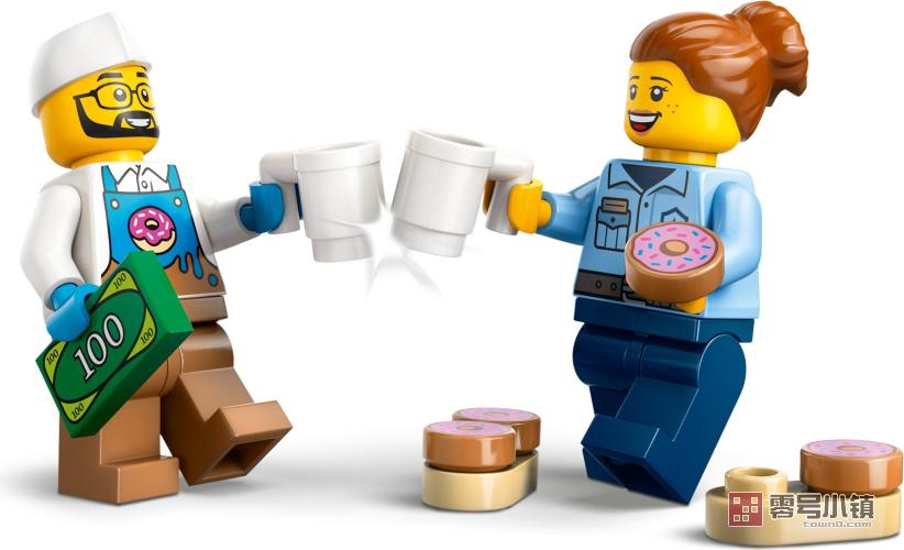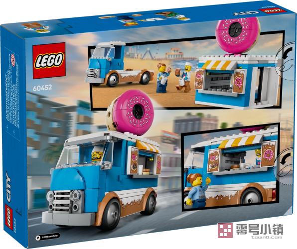 乐高城市组 Great Vehicles 玩具套装提供功能丰富的陆上、空中和水上玩具,可供进行开放式创意玩乐。孩子们可将这款玩具甜甜圈餐车与其它的乐高城市组套装(单独出售)组合,进行规模更大的冒险!