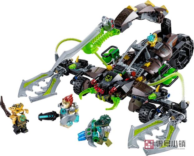 蝎王 蝎斯康 已经偷取了气能量,其他部落决定将其夺回。但是,他们首先必须避开蝎斯康 高速三轮蝎子刺的巨大有毒的爪子和嘴。帮助身着盔甲的部落武士鳄霸王和无敌狮用他们的大型掘进机和 暗影 勇士剑,并躲开发射到他们路上的毒蛋。小心怪刺灵活的蜇尾刺下,带着气能量撤退!包括 3 个小人仔及各类武器和配件:蝎斯康、无敌狮和鳄霸王身着新的盔甲。