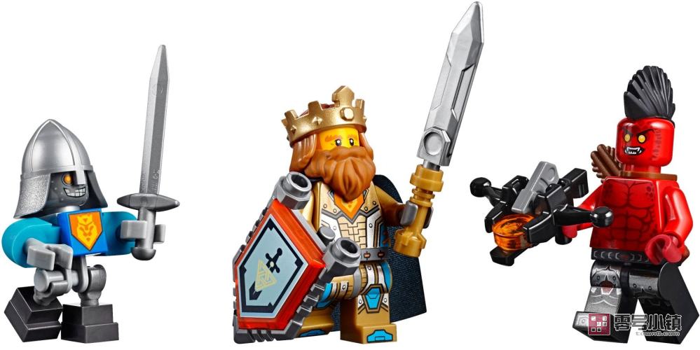 保卫城堡,等待增援部队!小丑及他的熔岩怪兽大军正在对国王的城堡发起最后冲 锋——但他们可没想到这个!技术神童罗宾•安达活已为哈柏特国王造好了强大的盔甲机器人,捍卫帝国的人民。在控制台上与值得信赖的国王的机械人一起挥动巨剑或发射飞盾。包括两个可抵挡 NEXO 能量的可扫描防护盾:风暴雷龙及逆火。