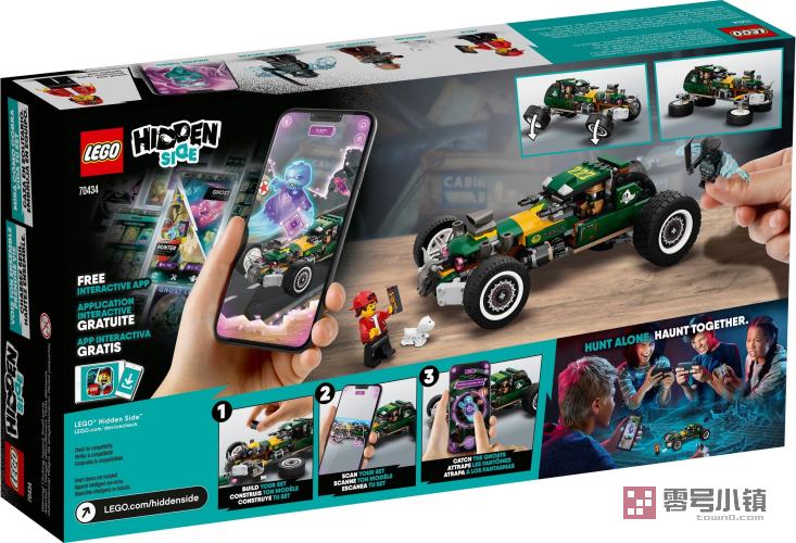 孩子们会喜欢上超赞的 Hidden Side 世界,这里将实体世界与数字世界融合在了一起!这款乐高® Hidden Side 超自然赛车 (70434) 玩具套装将可拼搭的乐高模型与应用程序结合,能够带来单人或多人混合现实游戏体验,与玩具进行交互即会触发数字世界中的事件。 多功能和数字化交互 当通过搭载乐高 Hidden Side AR 应用程序的智能手机或平板电脑进行查看时,这款超自然赛车会展现出被幽灵侵扰的数字世界。然后,孩子们可以在精彩的数字世界中进行探索,解开谜团,猎捕幽灵,并与鬼王 Maxine Turbo 进行大战。孩子们可以变换赛车的车轮,从行驶模式转换为飞行模式,与 Jack、Vaughn 和黑暗骑士小人仔及小狗 Spencer 一起进行精彩冒险。 不断变化的 Hidden Side 乐高 Hidden Side 玩具为乐高模型带来交互式增强现实 (AR) 游戏体验。我们会通过增添新内容、幽灵和特殊事件来不断增强这种游戏体验。